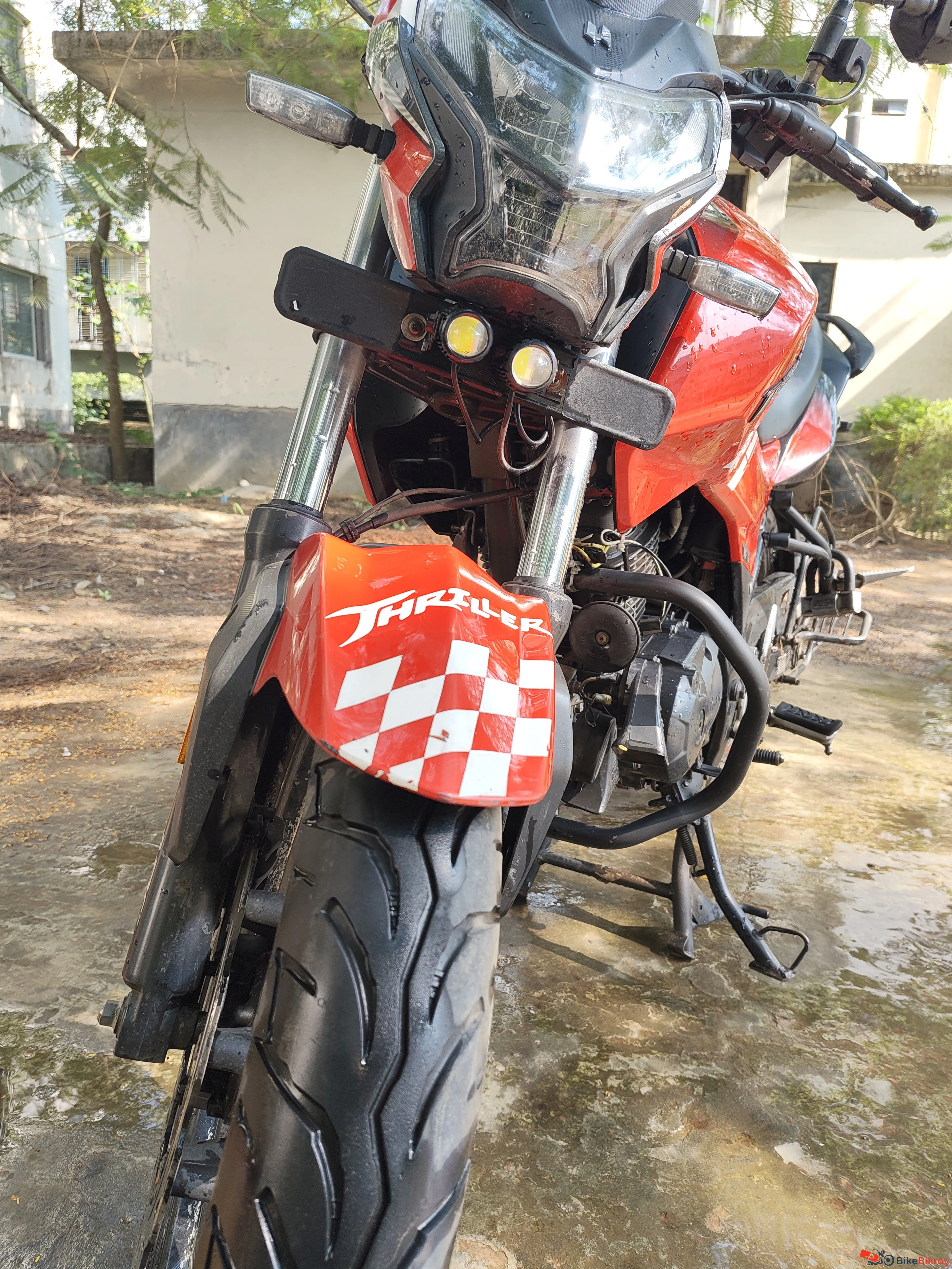 Hero thriller 160r 1st version. ১ হাতে ব্যবহার করেছি। ২মাস হয়েছে নতুন টায়ার লাগিয়েছি সামনে পিছনে। বাইকের নিরাপত্তার জন্য পাওয়ারফুল লোকেশন ট্র্যাকার জিপিএস সেট করা আছে। সেইসাথে পাওয়ারফুল ফগলাইট যা রাতেরবেলা হাইওয়েতে বাড়তি নিরাপত্তা দিবে। মাইলেজ এখনো ৪৮কিমি: প্লাস। ইঞ্জিন অনেক বেশি স্মুথ আছে। হায়ার সিসি বাইক কিনবো তাই বিক্রি করে দিবো। বি:দ্র: বাইকের ছবিগুলো মেকাপ ছাড়া 😊 বাস্তবে যেমন তেমনই। আগ্রহী হলে টেস্ট ড্রাইভ দেওয়ার সুযোগ রয়েছে।